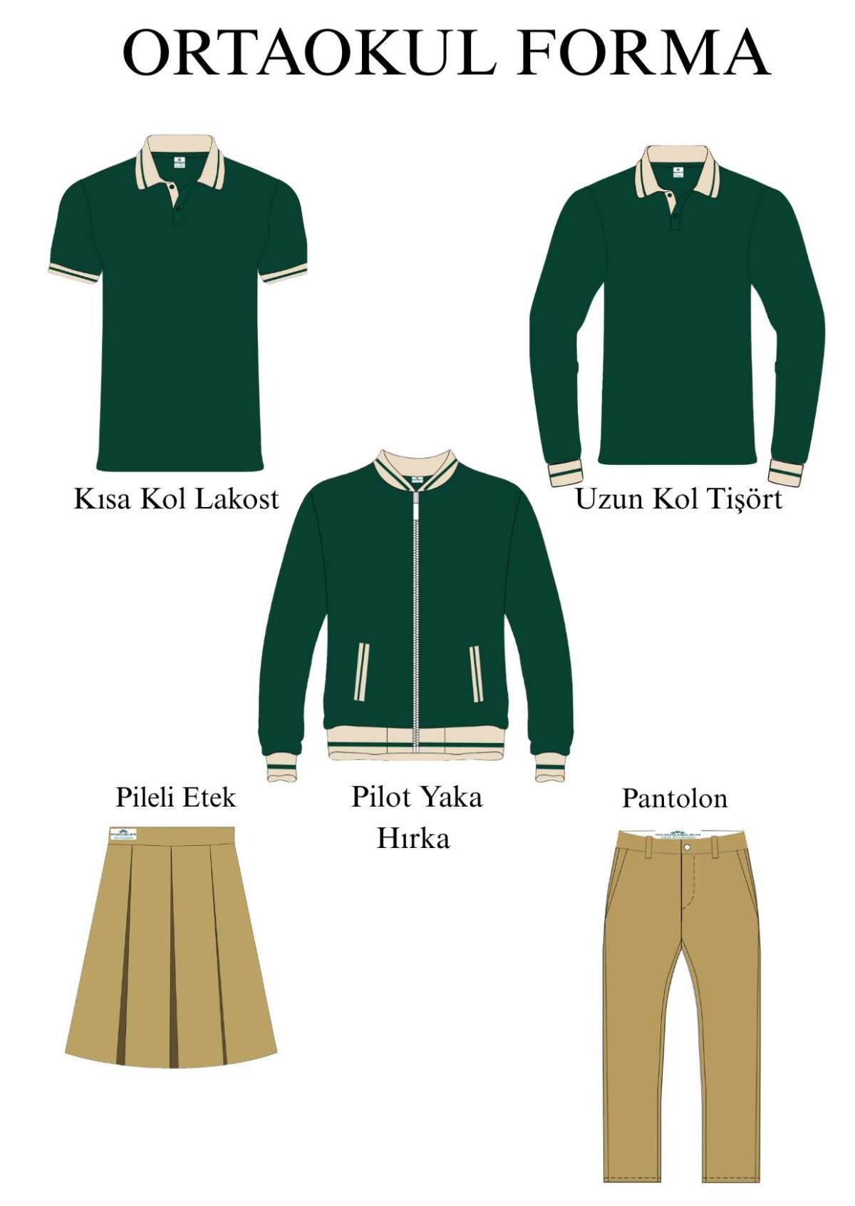 Bakanlık tarafından yayınlanan yönetmelik gereği bütün okullarda öğrencilerin okul üniforması giymesi zorunlu hale getirilmiştir. ilçemizde yapılan anket sonucunda belirlenen ortaokul forması aşağıdaki gibidir. Okul formalarımız armasız ve işaret bulundurmadığından velilerimiz istediği yerden temin edebilirler.